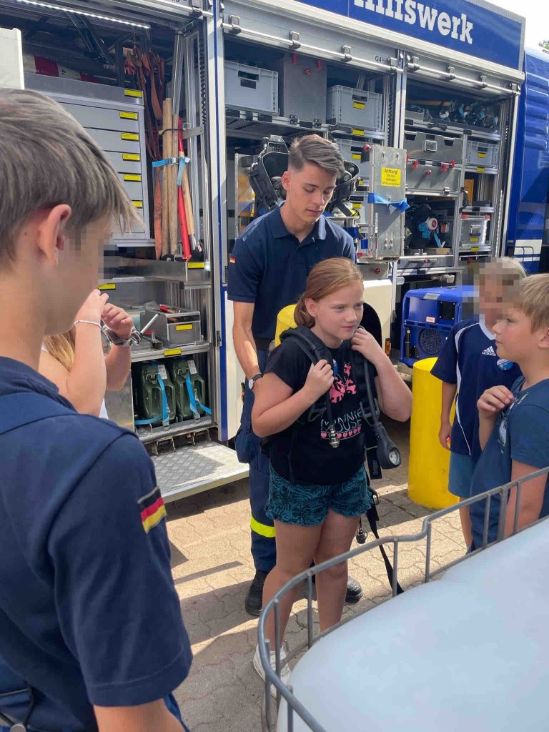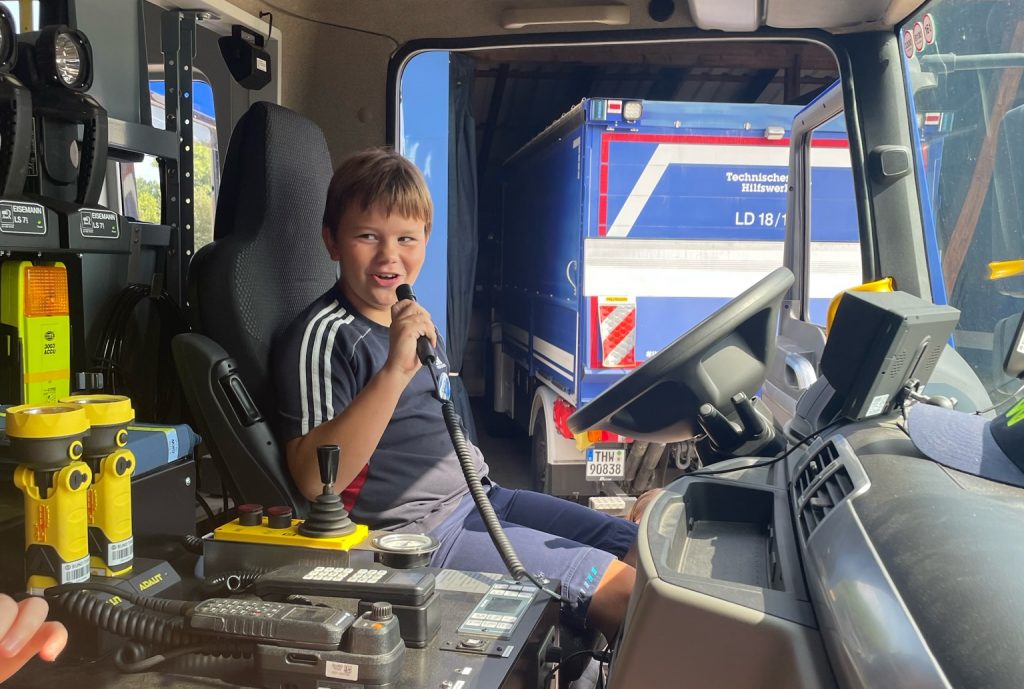 Pünktlich zum Start des Events wurden die jungen Teilnehmer von Stadtjugendpfleger Arno Schönhöfer herzlich begrüßt. Anschließend wurden die Kinder in Gruppen aufgeteilt und jedem von ihnen ein THW-Betreuer zugeteilt. Dieser führte sie durch das Gelände und erklärte ihnen alles Wissenswerte über die Arbeit des THW in Landau. Natürlich wurden die blauen THW-Fahrzeuge genauestens inspiziert und die Möglichkeit genutzt, Blaulicht und Sirene auszuprobieren – ein echtes Highlight für die jungen Gäste.