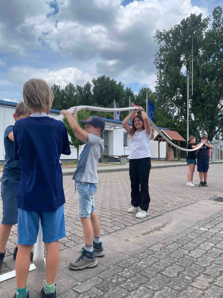 Nach einer stärkenden Mittagspause begann die Spielerallye. Die Teilnehmer konnten ihr Geschick und Teamgeist bei Funkspielen und Geschicklichkeitsspielen unter Beweis stellen. Bei angenehmen sommerlichen Temperaturen wurden auch lustige Wasserspiele organisiert, darunter die Inbetriebnahme und Verwendung einer Schmutzwasserpumpe, die für erfrischende Abkühlung sorgte.